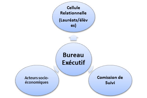 Cette cellule s'organise de manière à représenter toutes les filières de l'école au sein de l'association, autrement dit, sa composition comprend des représentants de chaque filière de l'école, collaborant avec un nombre actif des lauréats.